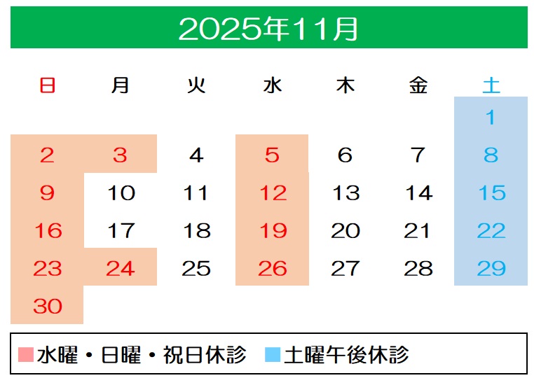 当院は運営上の理由から令和6年11月1日(金)より下記の通り診療時間・受付時間を変更させていただきます。 水曜日午前中に通院中の患者様、遅い時間の診療をご希望の患者様にはご不便・ご迷惑をおかけいたしますが、ご理解のほどよろしくお願いいたします。 水曜日 診察時間 10月まで 9:00〜12:00 11月から 終日休診 土曜日 診察時間 10月まで 9:00〜13:00 11月から 9:00〜12:00 月火木金 窓口受付時間 午前11:30まで. 午後17:30まで 土曜日 窓口受付時間 午前11:30まで |